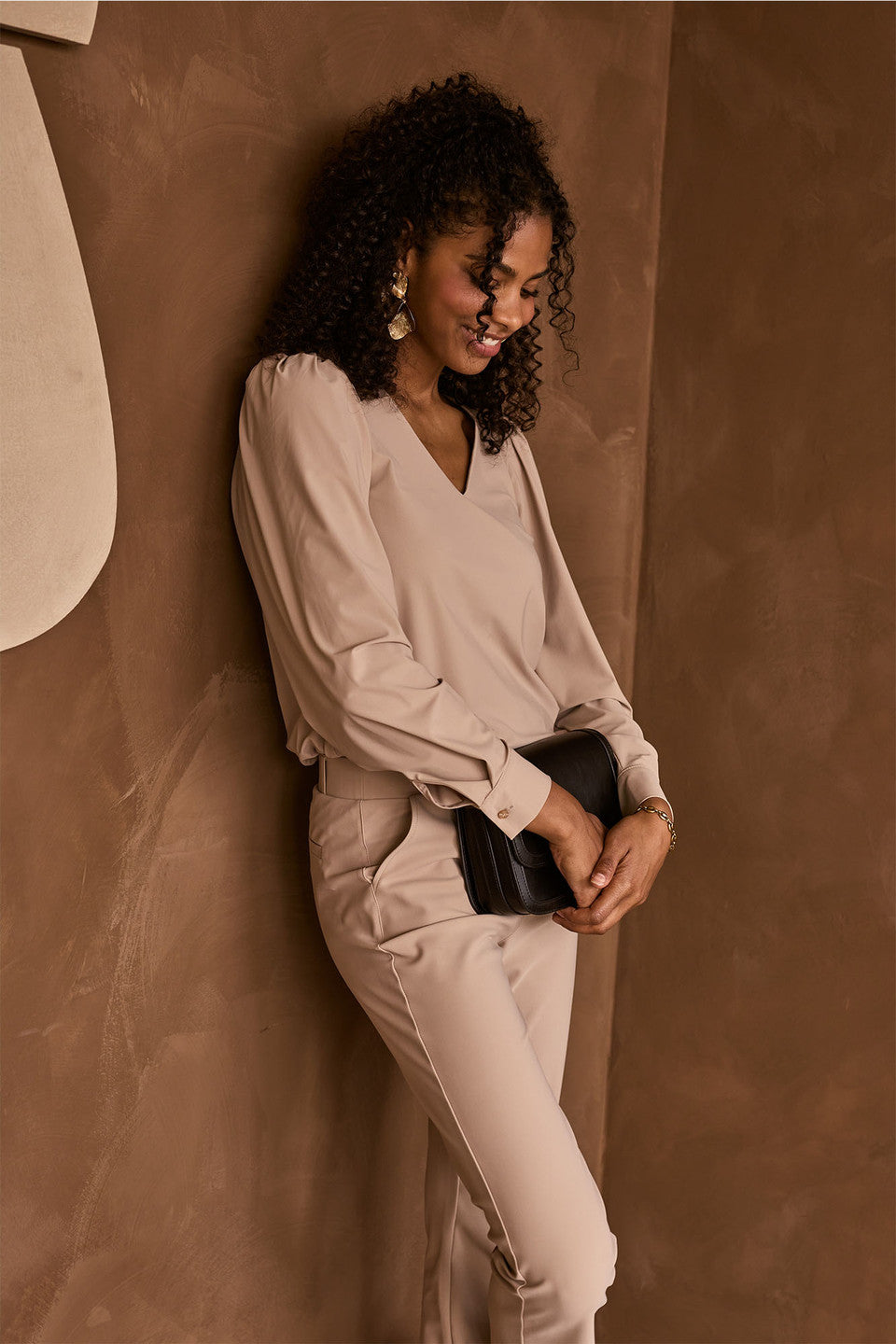 Maak kennis met de Les top Beige / Ecru van Studio Anneloes. Deze stijlvolle top is ideaal voor elke gelegenheid dankzij zijn elegante V-hals en lange mouwen. De beige tint voegt een tijdloze touch toe, perfect voor een dag op kantoor of een ontspannen weekend. Gemaakt van hoogwaardige, kreukvrije travelstof, biedt het item optimaal comfort en draaggemak.
