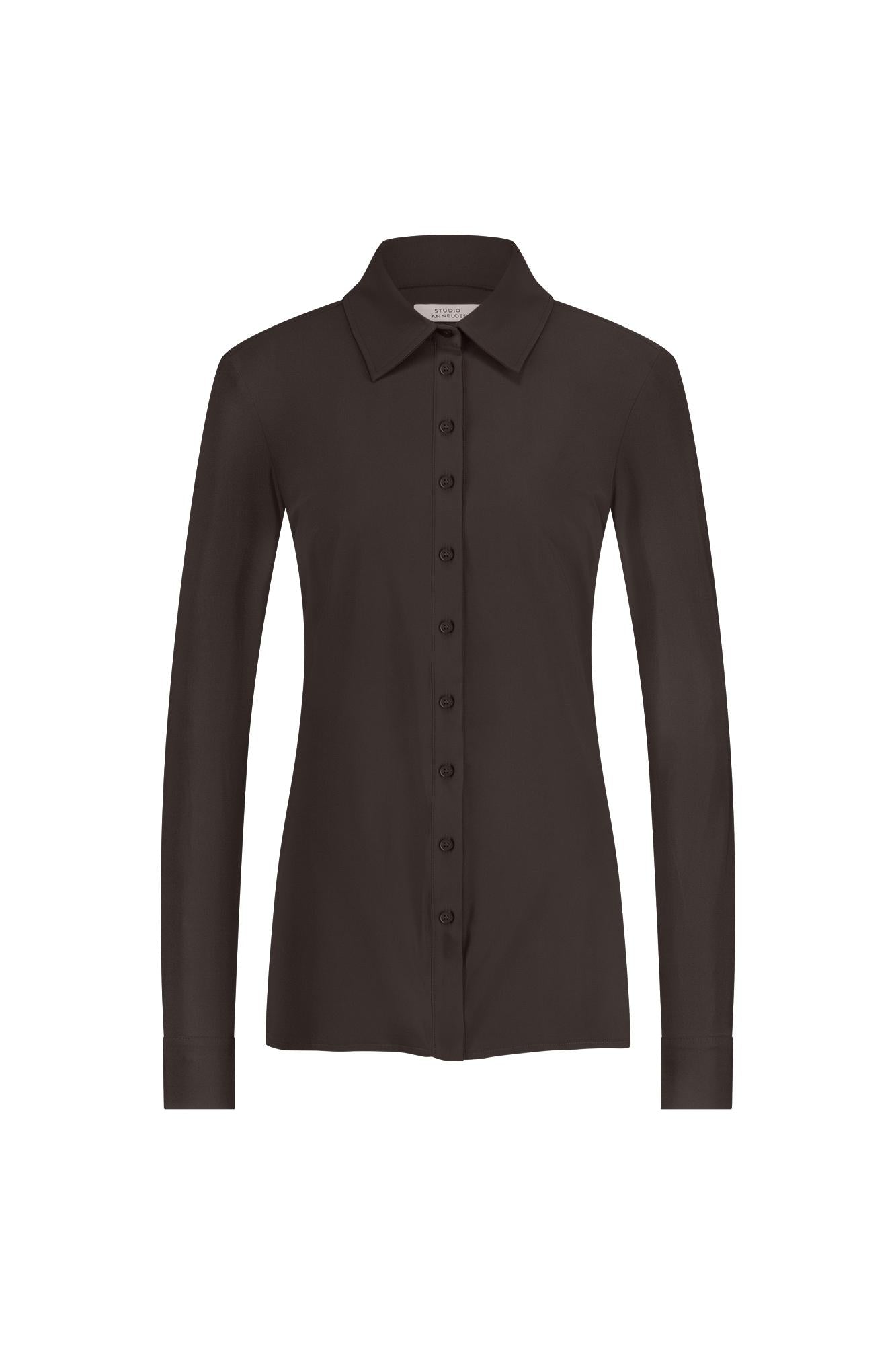 Deze Poppy blouse Bruin van Studio Anneloes brengt comfort en stijl samen. Met een klassieke kraag en lange mouwen geeft hij een tijdloze look. De diepe bruine kleur biedt een warme uitstraling die gemakkelijk te combineren is met andere items in je garderobe.