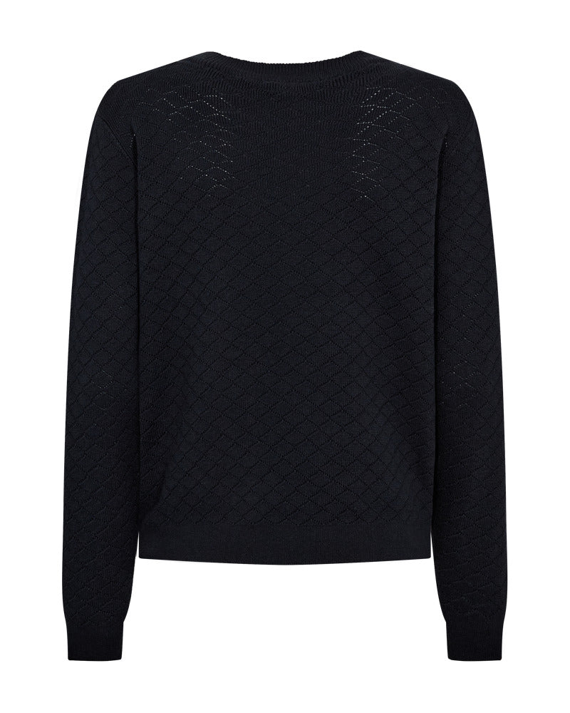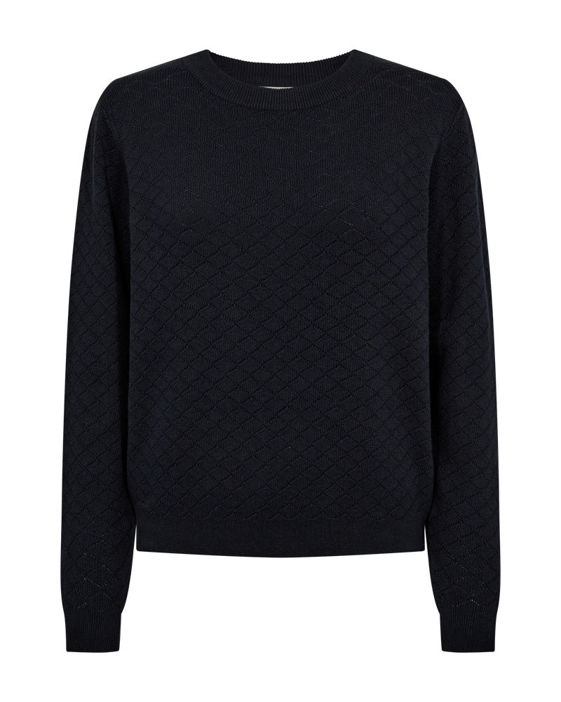 De FQDODO-PULLOVER Donkerblauw van Freequent straalt Scandinavische eenvoud uit met zijn tijdloze, minimalistische ontwerp. Deze donkerblauwe trui heeft een comfortabele pasvorm en een ronde halslijn die zowel verfijnd als subtiel is. De lange mouwen zorgen voor extra warmte en maken het item ideaal voor verschillende seizoenen.