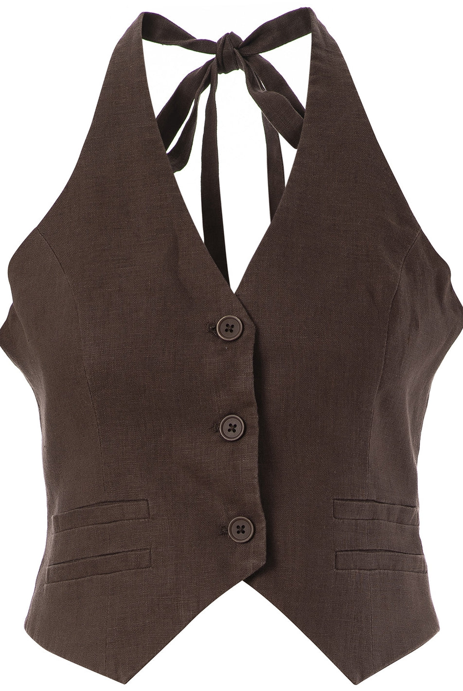 Dit vest van JcSophie is een ode aan zachte materialen en pure vrouwelijkheid. Het merk staat bekend om zijn romantische details en het gebruik van natuurlijke stoffen zoals katoen. De verfijnde afwerking met een vleugje kant aan de randen geeft een subtiele maar opvallende toets.