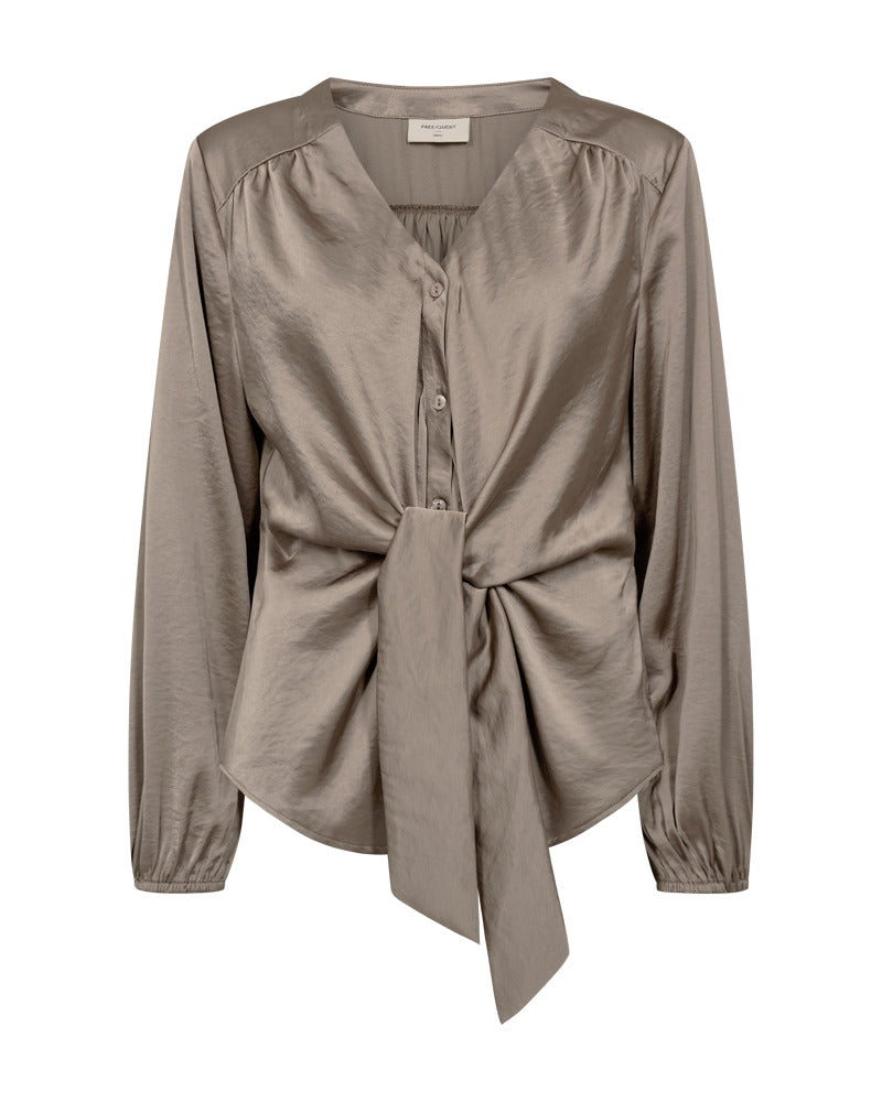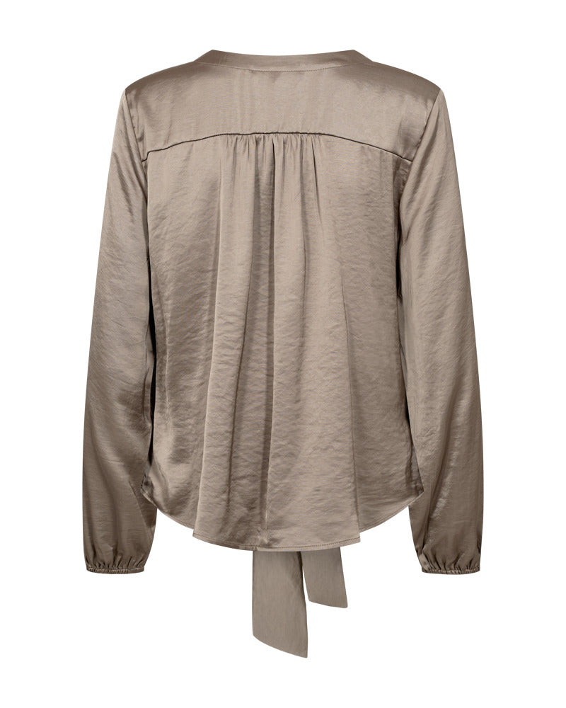 De FQDOVE-BLOUSE Taupe vangt de essentie van Scandinavische eenvoud. Met een subtiel V-halsontwerp en lange mouwen, biedt dit item een verfijnde uitstraling die zich vastklampt aan tijdloze elegantie. De natuurlijke taupekleur en de eenvoudig bedrukte stof versterken de ingetogen schoonheid, terwijl de comfortabele pasvorm je moeiteloos begeleidt door elke dag.