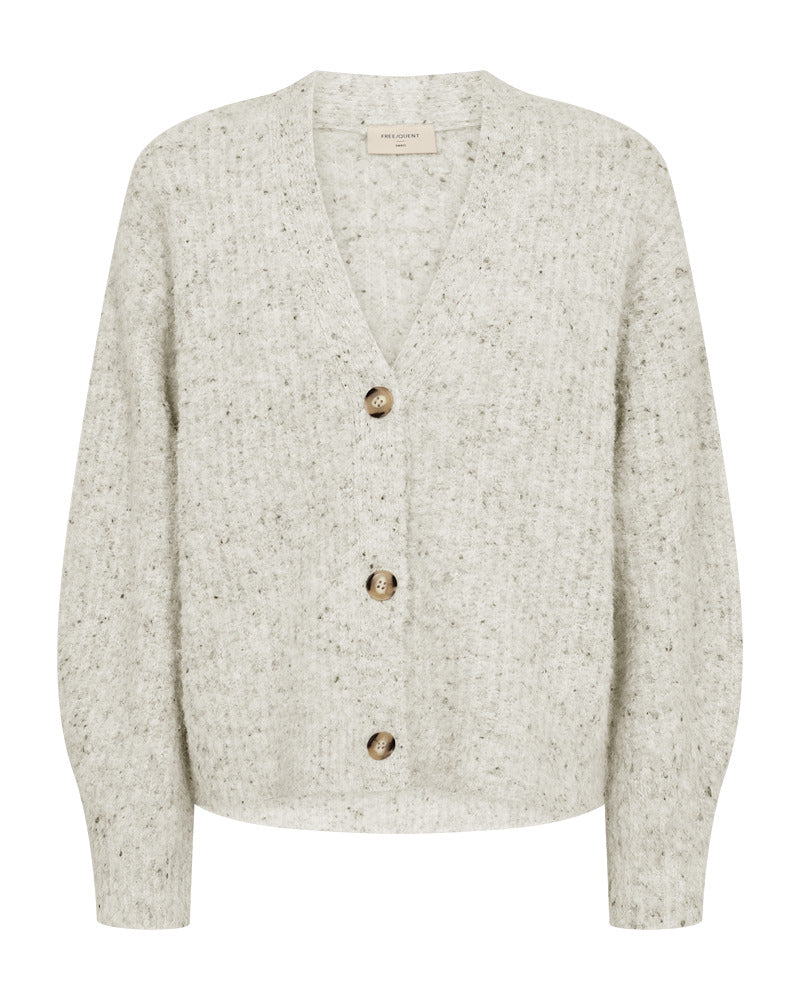 De FQGRSNEMES-CARDIGAN Beige / Ecru vangt de essentie van Scandinavisch minimalisme in een tijdloos en elegant jasje. Deze cardigan heeft een comfortabele, losse pasvorm met een verfijnde V-hals en lange mouwen, ideaal voor elke gelegenheid.