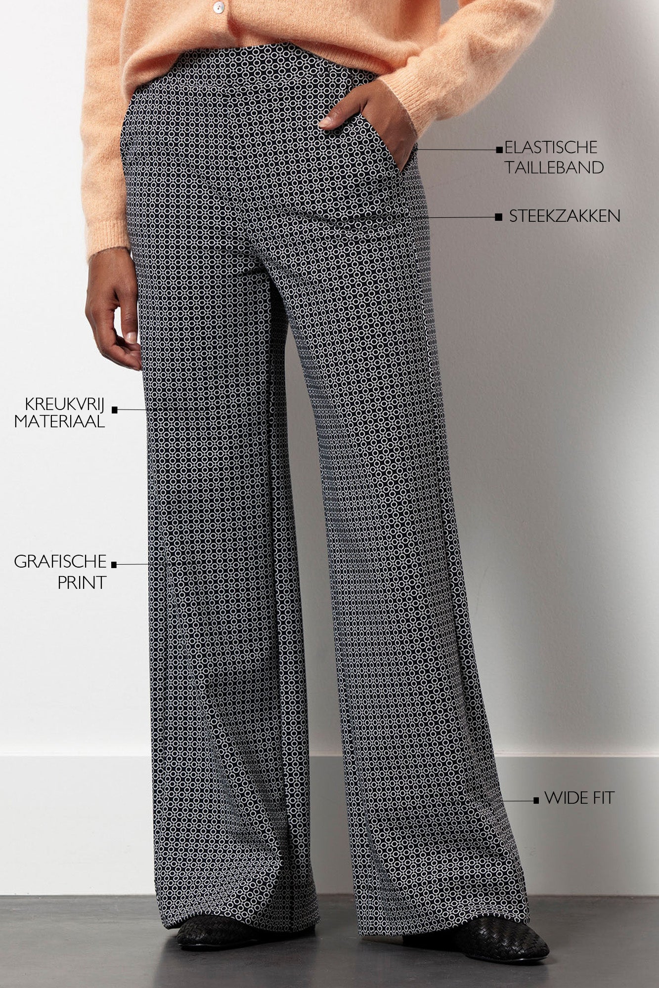 Met de Lexie bonded circle trousers Print ervaar je de unieke reisstof die zacht, onderhoudsvriendelijk en kreukvrij is. Perfect voor een elegant-casual uitstraling, deze broek sluit moeiteloos aan bij jouw dagelijkse routine. Geniet van de elasticiteit en fijne pasvorm, of je nu op kantoor bent of een ontspannen dagje hebt gepland.