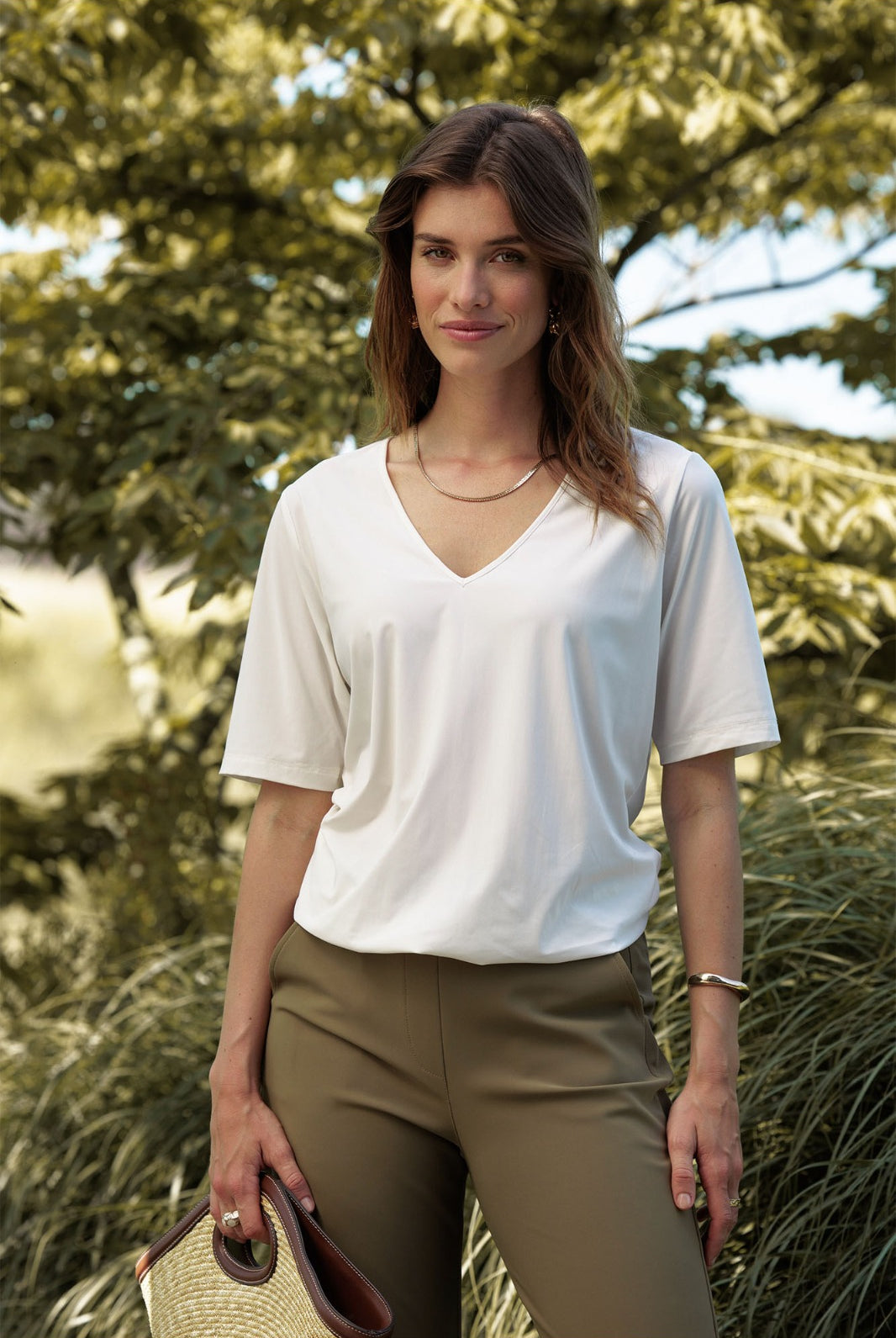 Het Vicky shirt Beige / Ecru is jouw nieuwe favoriet voor zowel werkdagen als relaxte dagen thuis. Dit prachtige item van Studio Anneloes heeft een V-hals en korte mouwen, waardoor het zowel stijlvol als comfortabel is.