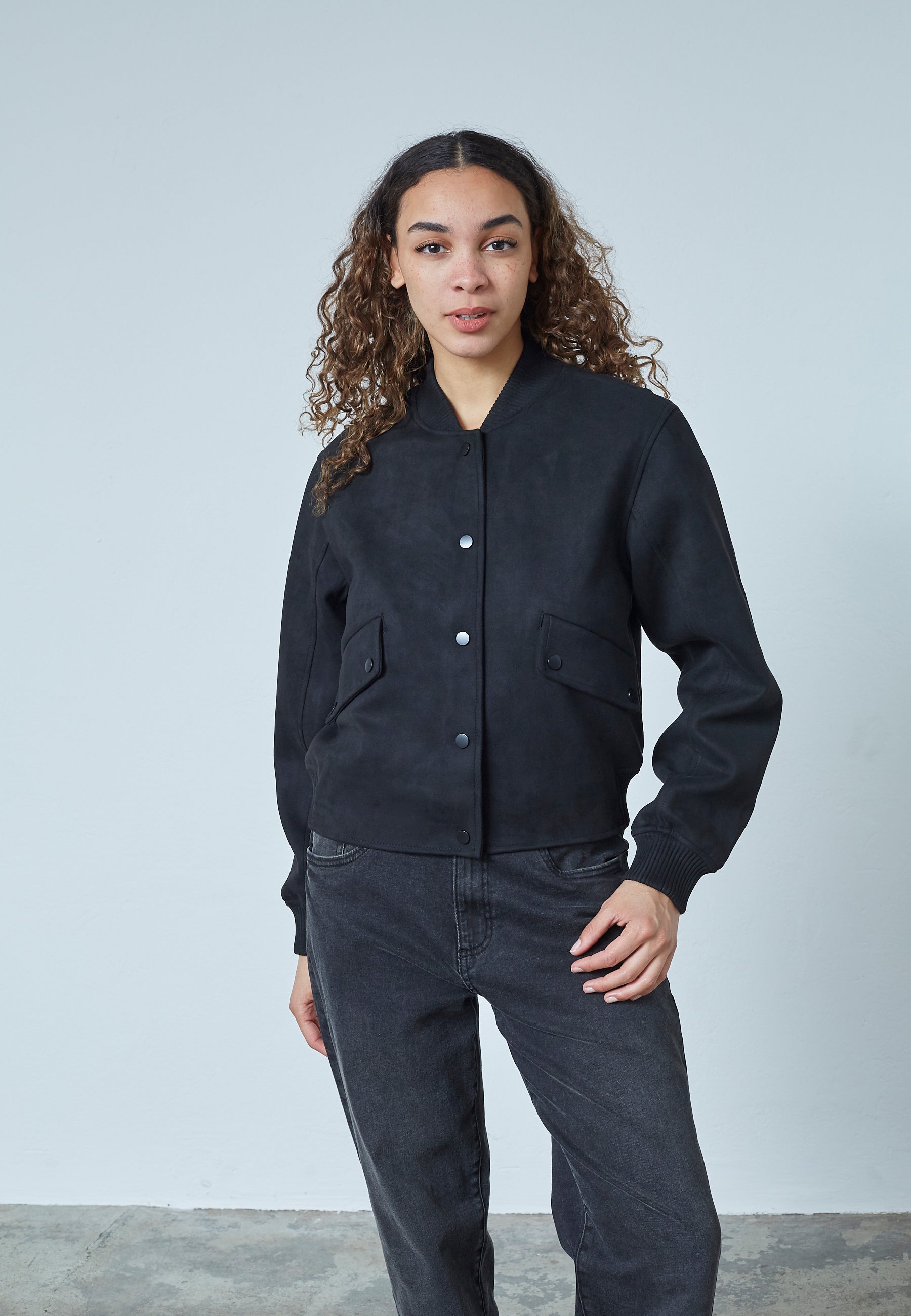 Geef je outfit een boost met de FELMA-JACKET Zwart van Sisters Point. Dit item heeft een trendy bomberstijl die elke look een speels en zelfverzekerd karakter geeft. De jas komt in een tijdloze zwarte kleur, met een subtiele en gladde afwerking. De ribgebreide kraag en lange mouwen zorgen voor een comfortabele pasvorm.