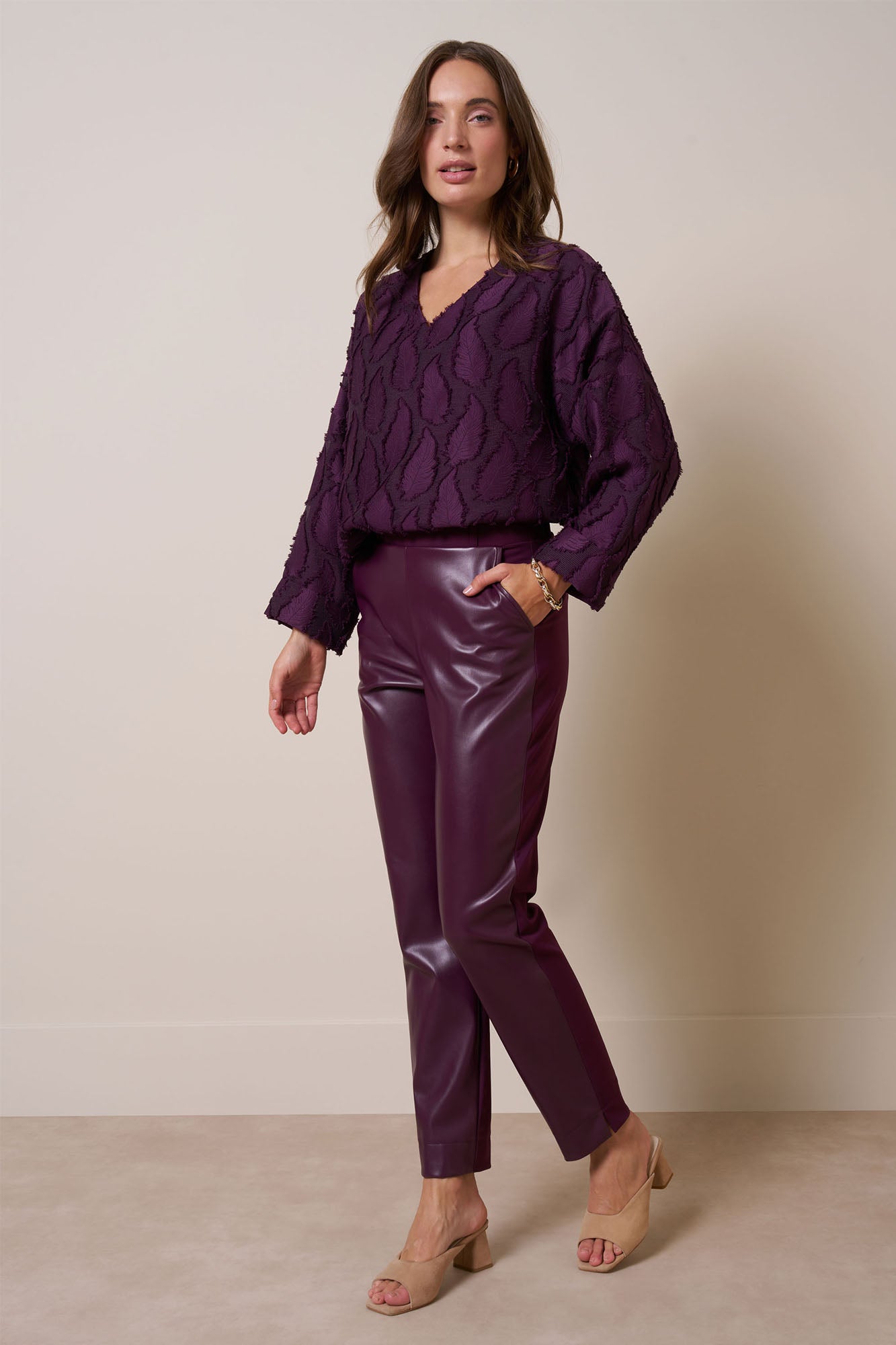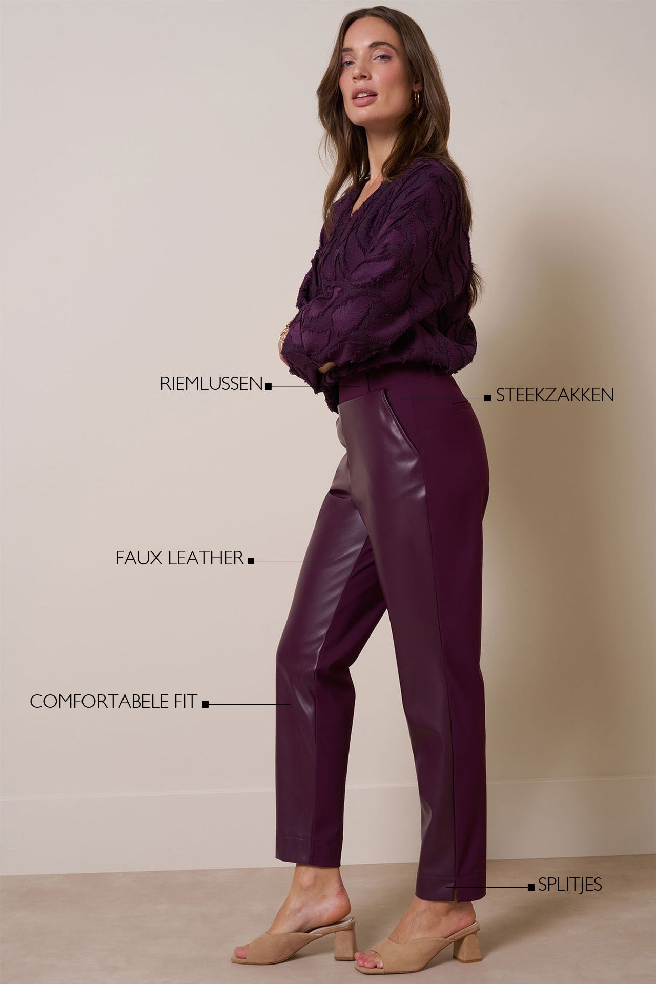 Geef je garderobe een boost met de Anne faux leather trousers Rood. Deze broek van Studio Anneloes valt op door de flatterende pasvorm en rijke, diep paarse tint. Het faux leather materiaal voelt luxueus aan, terwijl het je een moderne uitstraling geeft zonder concessies te doen aan comfort.