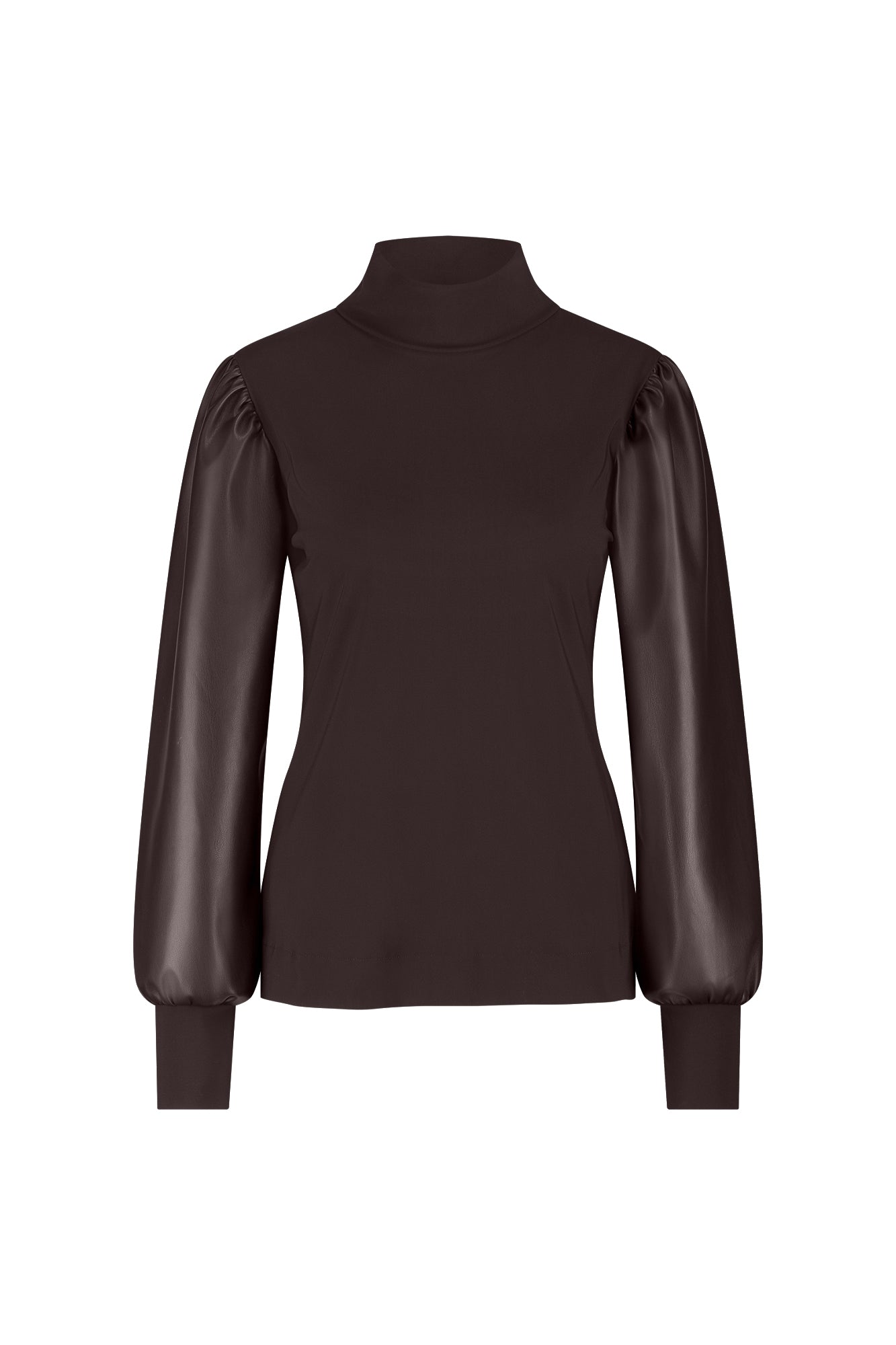 Ontdek de perfectie van eenvoud met de Noortje faux leather top Bruin. Deze bruine top van Studio Anneloes biedt een casual chic uitstraling met een elegante hoge hals en opvallende lange mouwen van imitatieleer. Perfect voor zowel op kantoor als een ontspannen dagje uit.