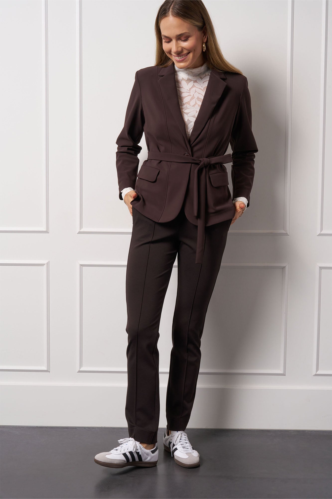 Ervaar het ultieme comfort met de Shiloh bonded blazer Bruin. Dit prachtige item van Studio Anneloes combineert een tijdloze pasvorm met lange mouwen en een klassieke kraag, perfect voor elke dag. De diepe bruine kleur en het minimalistische ontwerp maken het tot een veelzijdige keuze voor zowel werk als vrije tijd.