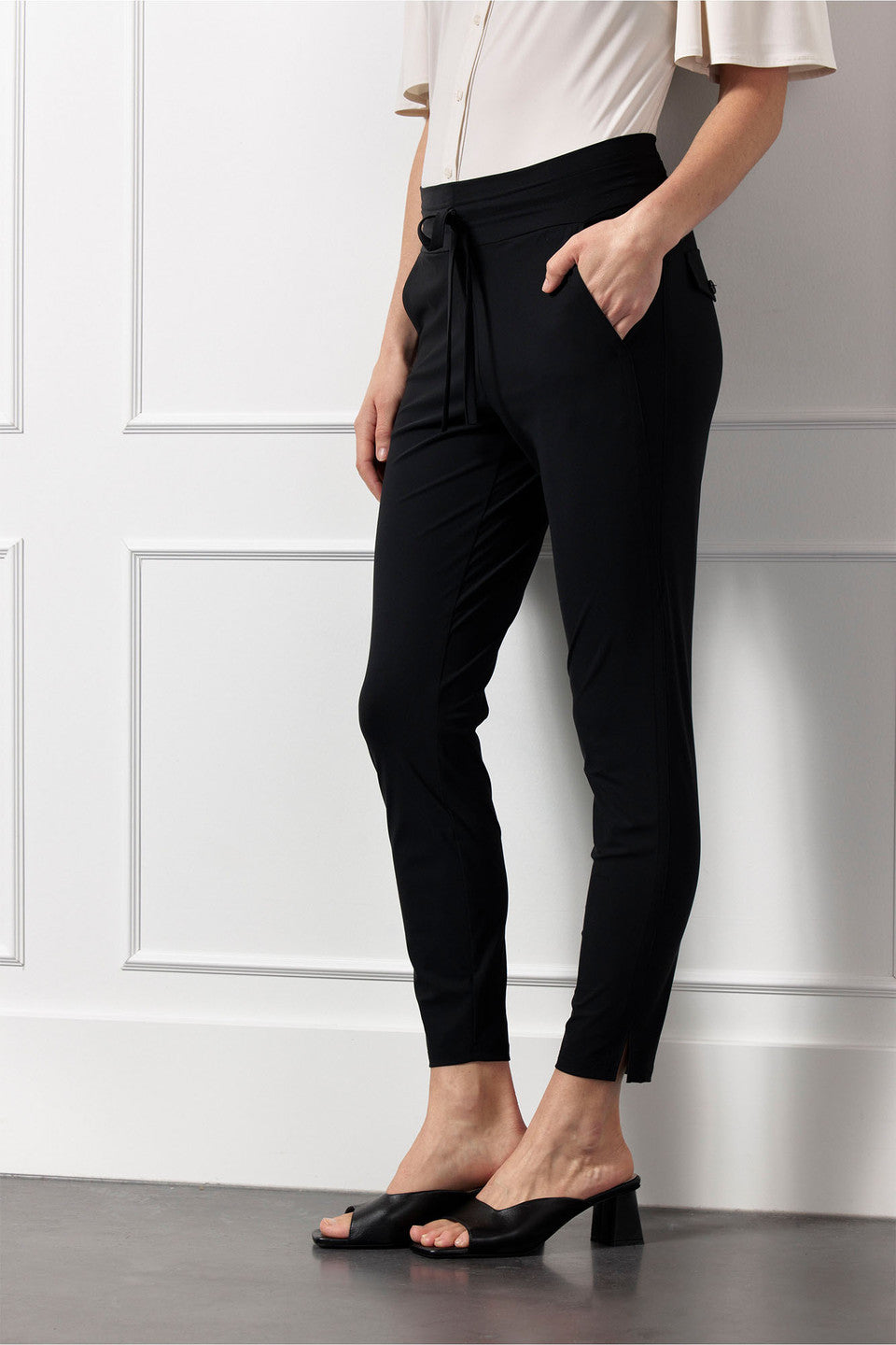 Gemaakt van hoogwaardige Travel kwaliteit, voelt het materiaal zacht aan op je huid en blijft het kreukvrij, zelfs na een lange dag. Dat maakt de broek perfect voor zowel een drukke werkdag als een relaxte middag in de stad.