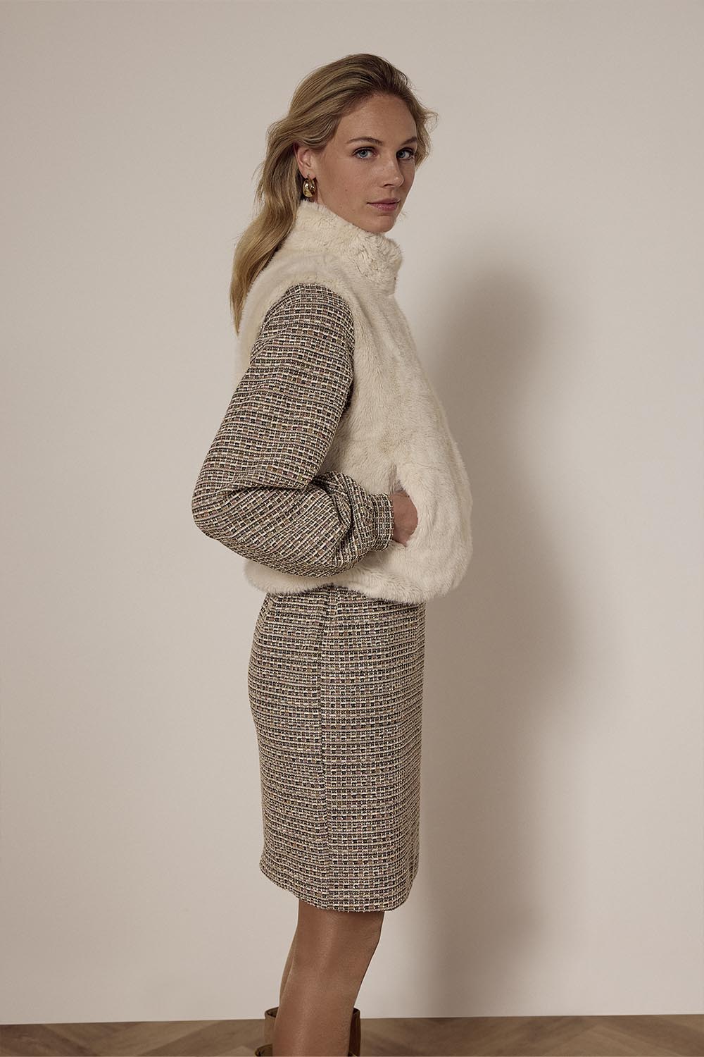 Het vest is vervaardigd met oog voor detail en vakmanschap. Het faux fur imiteert perfect de rijke textuur van echt bont, zonder concessies te doen aan ethische waarden. Deze combinatie van comfort en stijl maakt het een opvallend item in je garderobe.
