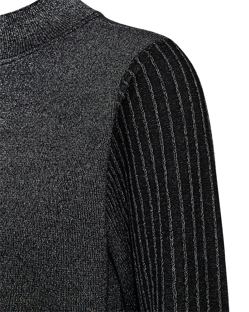 Ervaar de subtiele elegantie van de FQBISOLO-PULLOVER Zwart. Met een comfortabele pasvorm die licht los valt, biedt dit item een moderne look dankzij de fraaie structuur. Het item heeft een verfijnde uitstraling door zijn effen zwart kleur en subtiele ribbelpatroon op de mouwen. Een hoge kraag accentueert de nek op een elegante manier, en de lange mouwen voegen een extra laag van warmte toe.