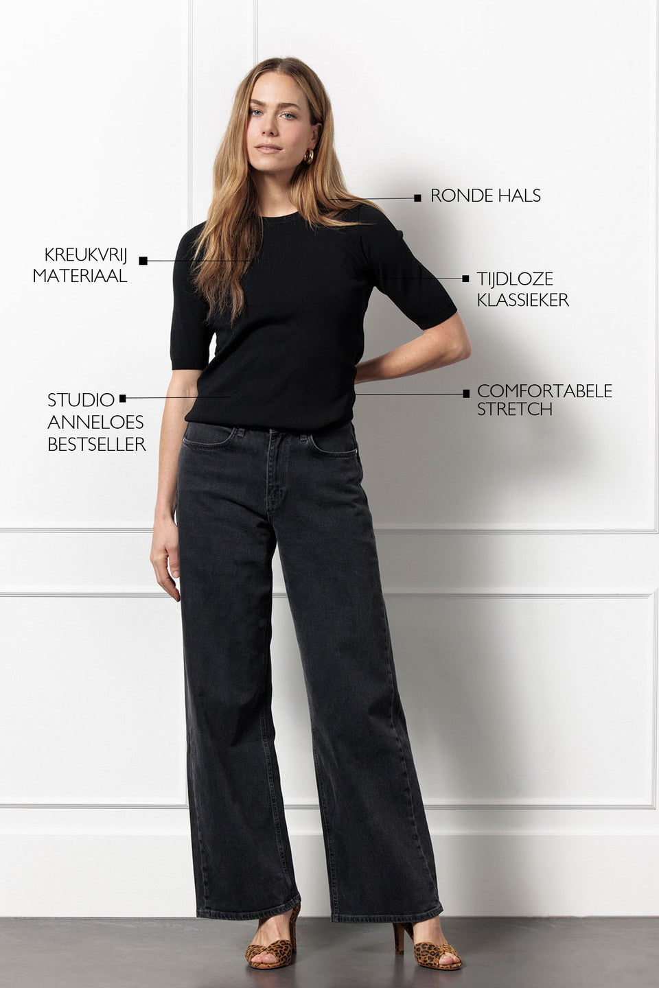 Dompel jezelf onder in het ultieme comfort met de Lana ssl solid pullover Zwart. Deze trui van Studio Anneloes biedt een verfijnde pasvorm met korte mouwen en een elegante ronde hals. Ontdek de eenvoudige schoonheid van zijn effen ontwerp.