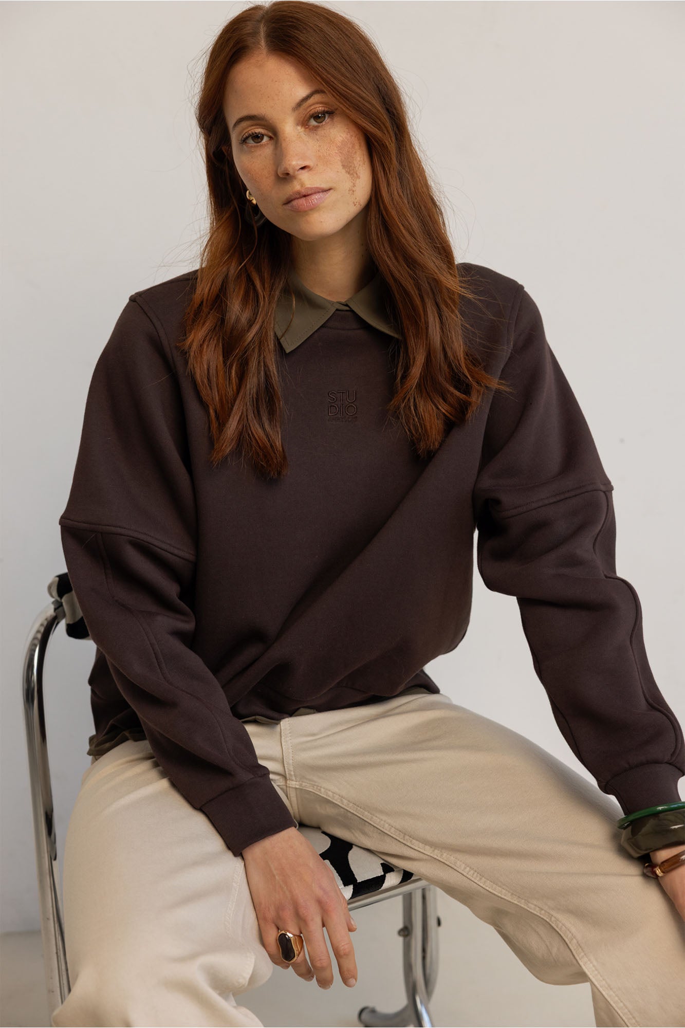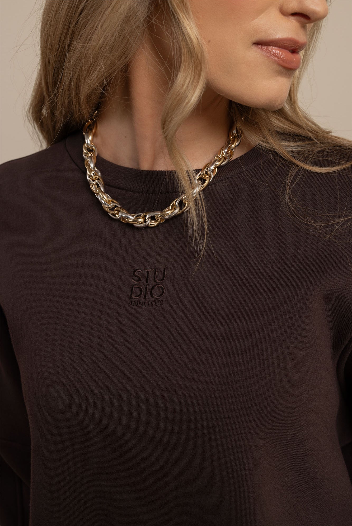 De Pleuni studio sweater Bruin is de perfecte balans tussen comfort en stijl. Met zijn zachte stof en relaxte pasvorm voel je je direct op je gemak. De warme bruine kleur en ronde hals maken het een veelzijdig item dat zowel op kantoor als in je vrije tijd niet misstaat.