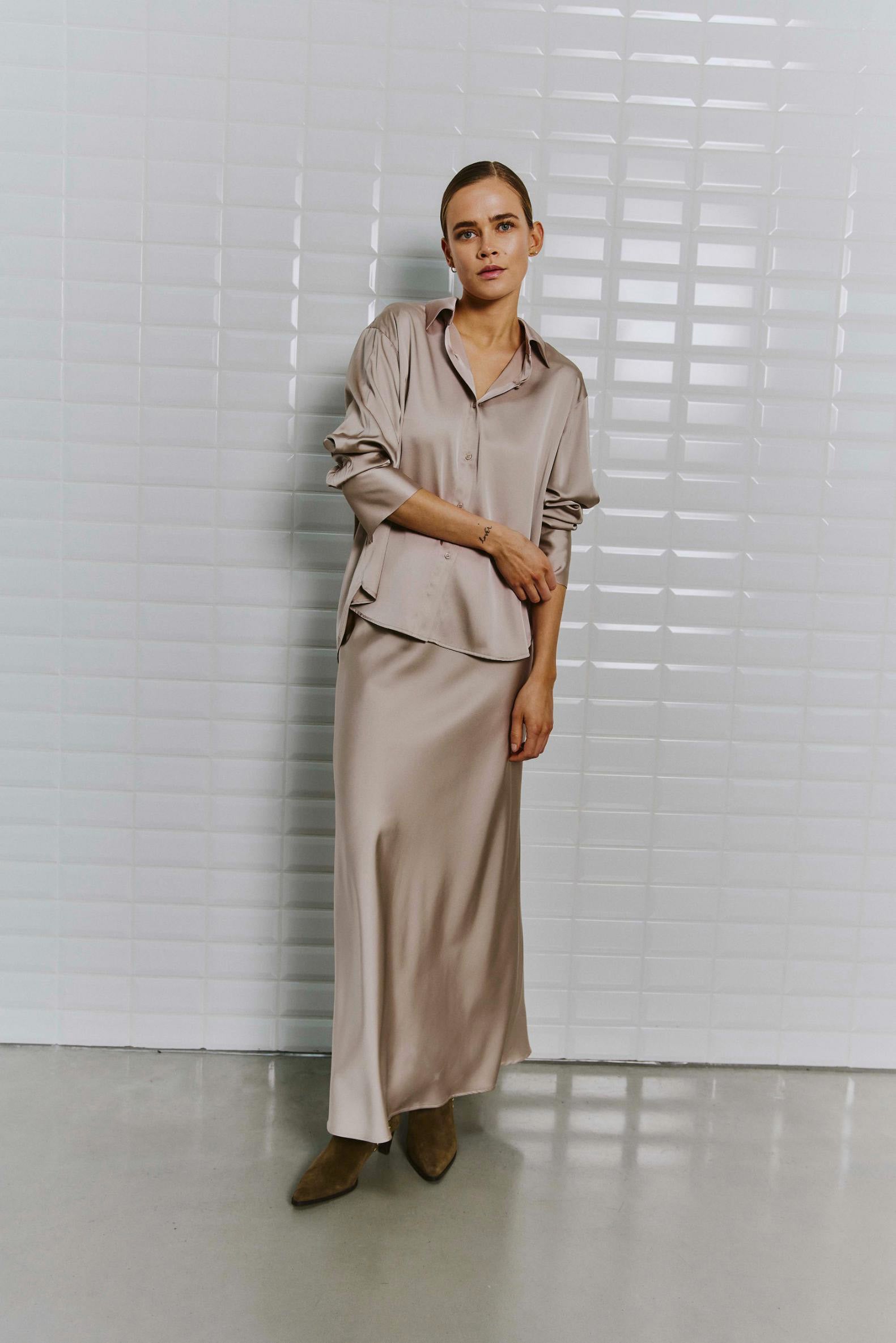 Gemaakt van een hoogwaardige satijnen stof, omarmt deze blouse moeiteloos moderniteit. De soepele constructie zorgt voor een moeiteloze pasvorm die bij iedere beweging comfort biedt.